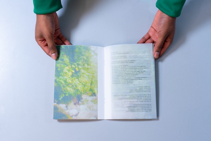 Le poème, qui prend une place centrale dans l'édition est entouré par mes photographies, cette fois-ci interprétées par la risographie.