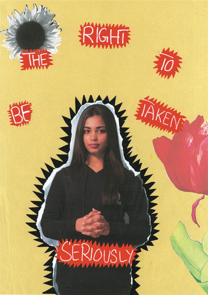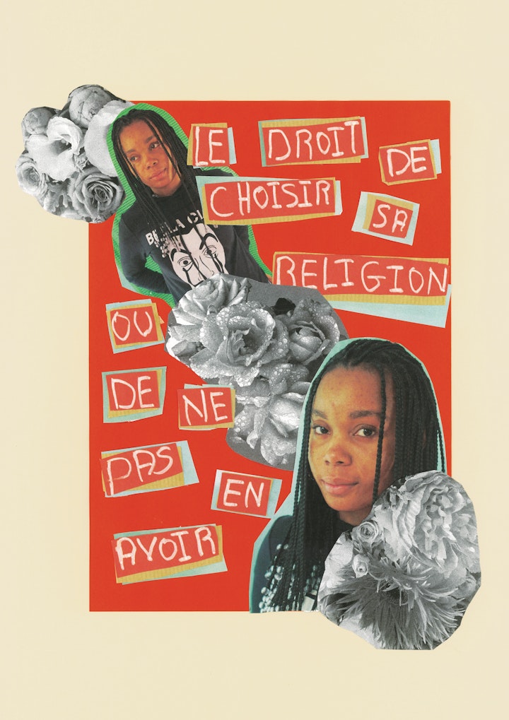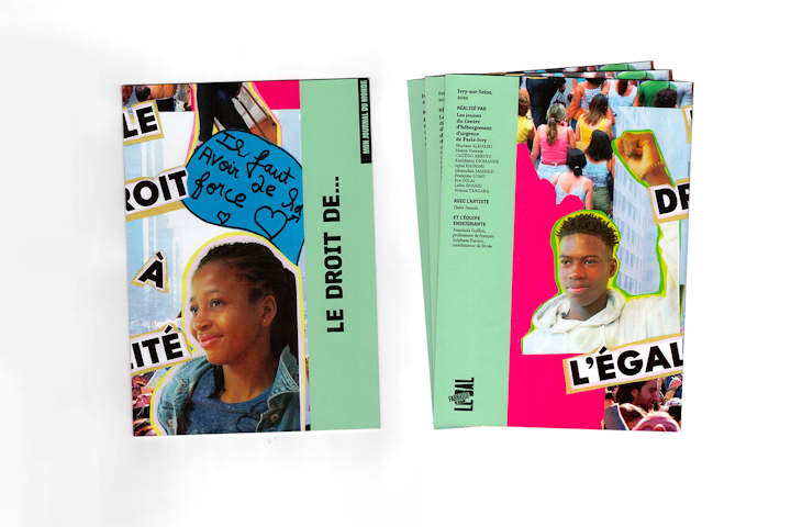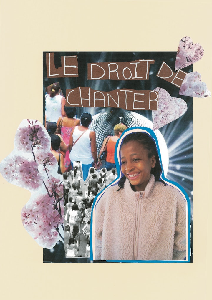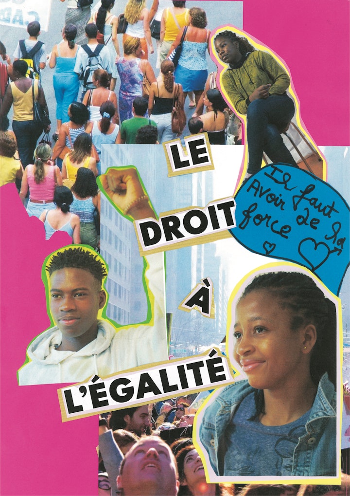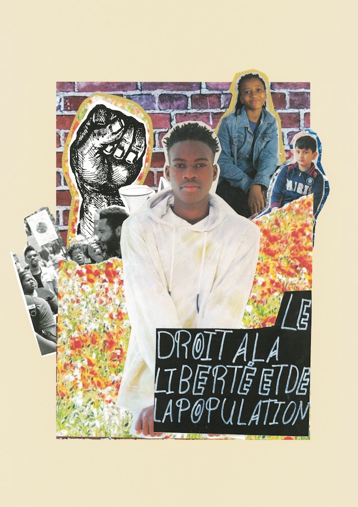 Quand vient l’heure de l’assemblage, les jeunes graphistes associent leurs portraits à leurs mots et à de banales ou poétiques images du quotidien. Chacun·e repart avec une image empouvoirante de soi, réalisée dans une démarche collective.”