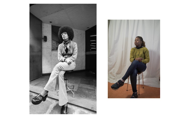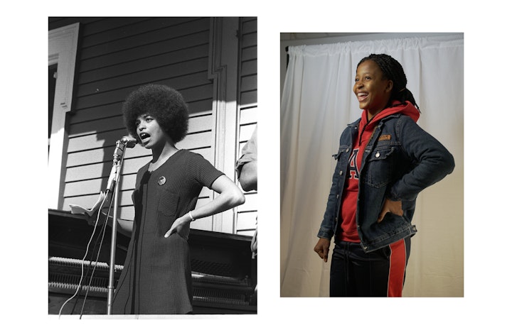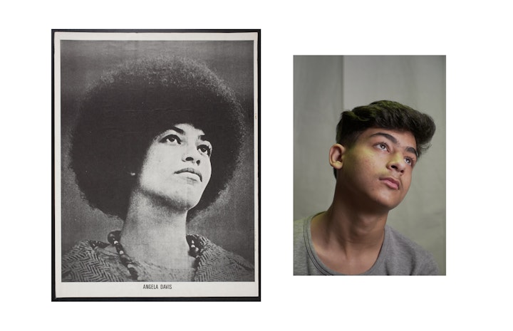 “Comment est-on perçu·e·s par soi-même, mais aussi par les autres, quand on est un·e ado en migration, en 2022 ? En partant des portraits d’Angela Davis, les jeunes du centre d’Ivry sont initié·e·s la construction d’une image.