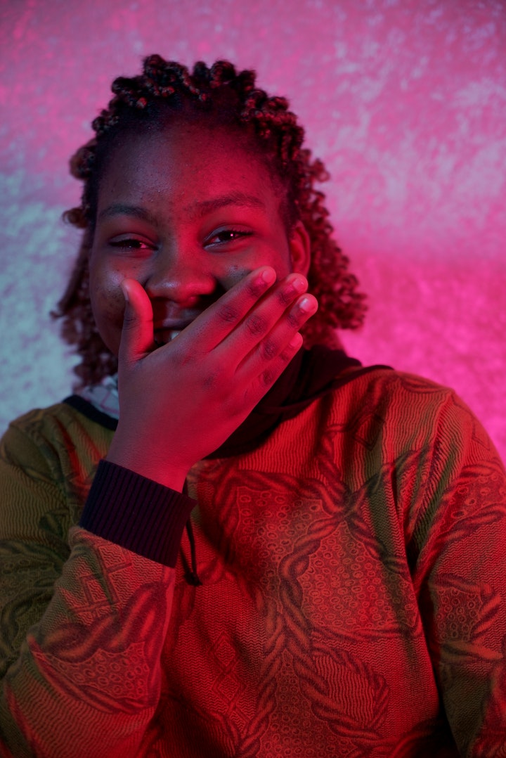 Pendant l’étape de pratique, les apprenti·e·s photographes, modèles et assitant·e·s défilent tour à tour sur les fonds de couleur. On garde en tête l’esprit combatif de Davis — pour ajouter la légèreté et le rire là où ils sont nécessaires.