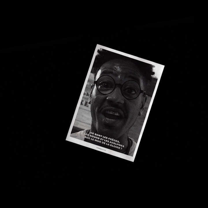 Pour tenter de remédier à cette absence, je propose un projet de hacking, d’irruption spontanée de ces personnalités dans les espaces publics où l’art et le design noir est encore trop absent — à commencer par les murs de mon lieu d’étude.